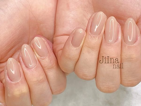 穏やかさが心地よい、ベージュカラーのシェルネイル。