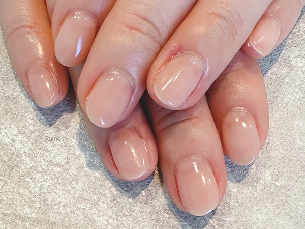2026年のミニマルネイルの主役となるのは「ガラスネイル」です。「ガラスマニキュア」とも呼ばれます。韓国コスメから世界中に広まった「ガラススキン」の流れを汲むトレンドで、透明度が高く、つやのあるクリアネイルを指します。