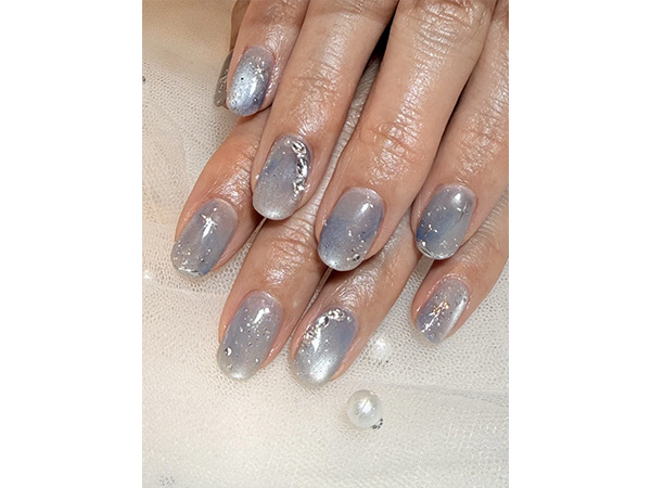くすみブルーは、梅雨ネイルに人気のカラー。