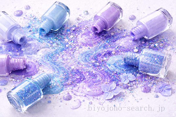 梅雨ネイルの定番といえば紫陽花ネイル。ブルー・パープル・ピンクのカラーを重ねて優しいグラデーションを作ることで、紫陽花を想起させるデザインも人気です。