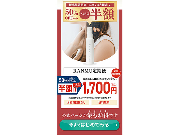 「蘭夢 薬用育毛ローション」は定期便での購入もできます。定期便は初回が75%オフの1,700円、2回目以降は300円オフの6,500円です。通常購入・定期便どちらも送料無料です。