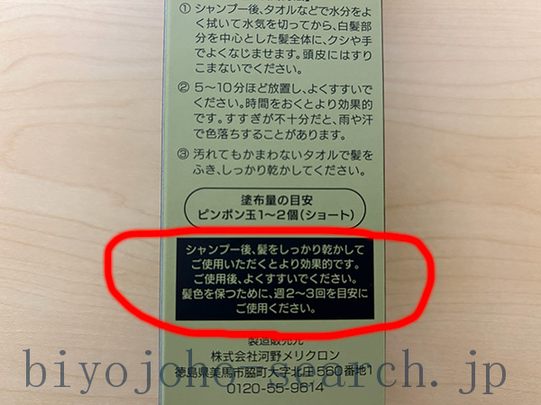 ただし、すすぎが不十分なときや、髪が濡れたときに色落ちすることがあります。寝具やタオル、帽子などを汚さないよう気を付けましょう。