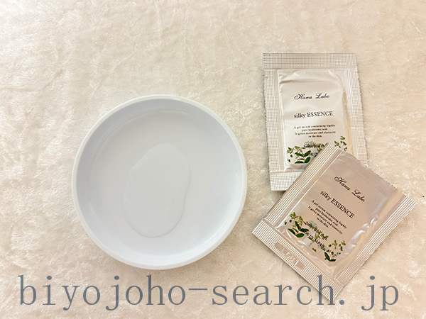 「silkyエッセンス」は、とろみのあるテクスチャーでしっとりとした塗り心地です。グリセリンや油分は含まれていないため、ベタつきは残りません。こちらも肌質を問わずに使えるでしょう。匂いもほぼありません。
